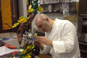 Un vero "mago" del cioccolato. E' maître chocolatiere patissier presso la Scuola d’Alta Cucina Boscolo Etoile Academy (Tuscania), specializzato nella lavorazione del cioccolato artistico, oltrea d essere il maitre nazionale della grande casa Lindt.